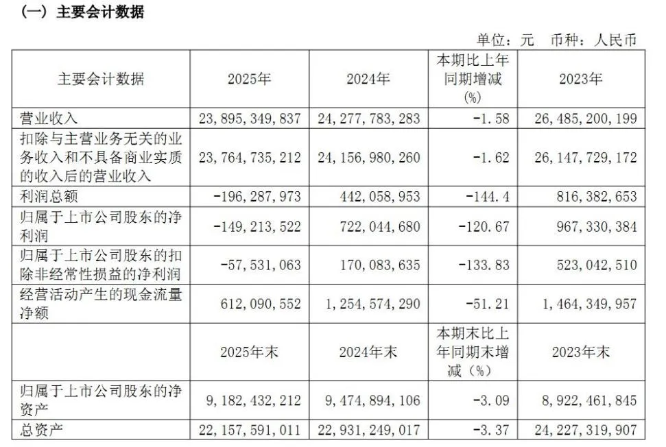 日前,光明乳业股份有限公司(以下简称“光明乳业”)交出了一份营收、净利双降的成绩单,揭开了这家老牌乳企自上市以来第二次出现亏损的序幕。根据光明乳业2025年年度报告,公司实现营业收入238.95亿元,同比下降1.58%;归属于上市公司股东的净利润为-1.49亿元,同比暴跌120.67%,反映出公司盈利能力承压。