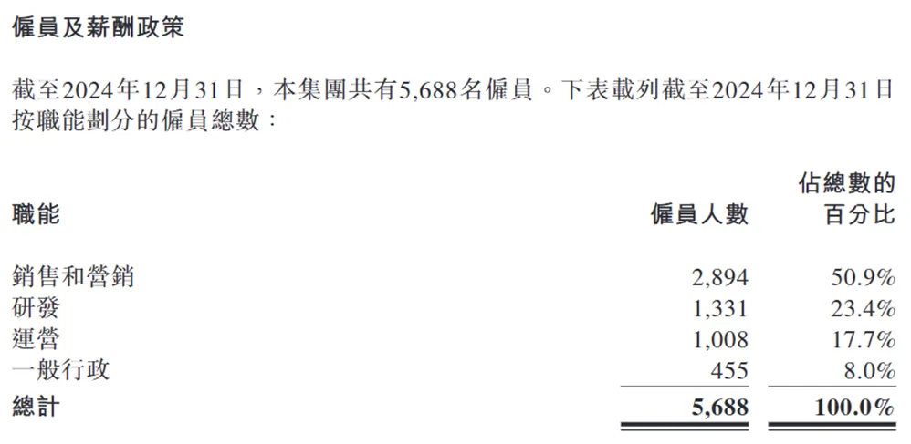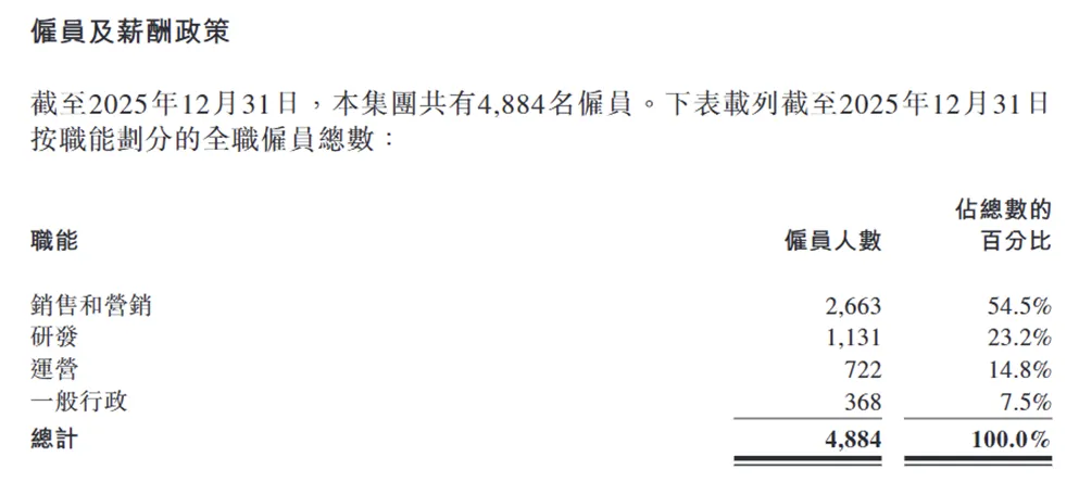 费用压缩的直接结果是人员规模大幅缩减。截至2025年末,公司员工总数从2024年末的5688人降至4884人,全年净裁员804人,缩减比例高达14%。从岗位结构看,裁员覆盖全职能,运营岗位受冲击最显著,人数从1008人锐减至722人,裁员率28.4%。