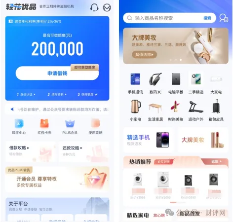 轻花优品在应用商店自称“积分购物平台”,主打“额度高至20万元”“费息透明”。然而,用户反馈显示,其运营模式更接近于高利贷平台。