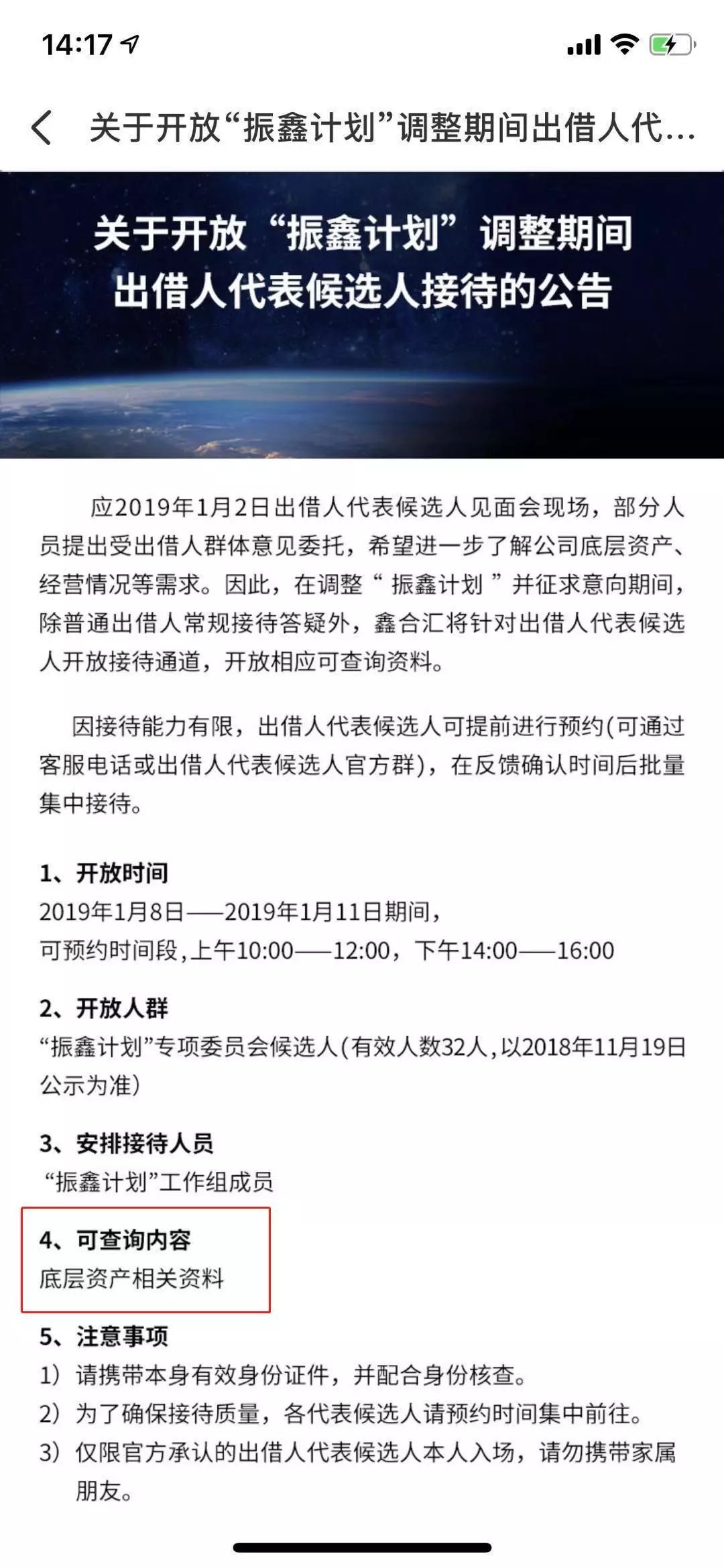 1月6日鑫合汇正式发布调整“振鑫计划”表决公告,并传达了一种把平台的命交到出借人手中的“大无畏”精神。