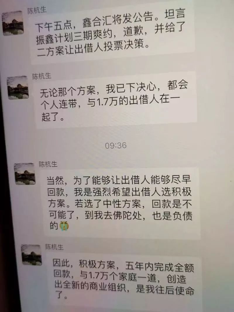 暴雷之后的彷徨和等待,加上对于平台兑付方案一再改之的愤怒,目前鑫合汇似乎已经拿不出更好的方法来应对众多出借人,而陈杭生的硬气将能不能带动着已经是“千疮百孔“的鑫合汇迎来新气象呢?