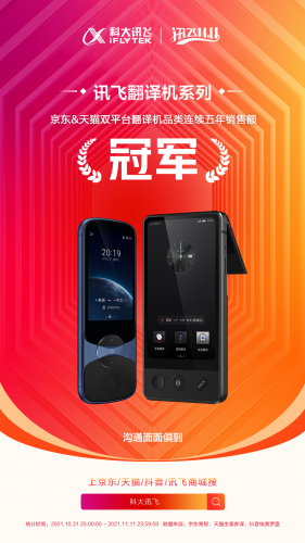 今年双11,讯飞翻译机再次获得京东&天猫双平台翻译机品类销售额冠军,这已经是讯飞翻译机第五年蝉联此殊荣。