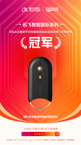 本次大促中,讯飞智能鼠标系列获得京东&天猫双平台智能语音鼠标品类连续三年销售额冠军。