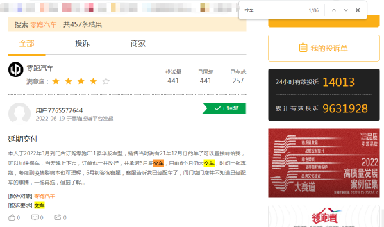 同时,全域自研为零跑带来了一定的疫时供应优势,而在常态下,零跑汽车的供应能力并不强。从黑猫投诉以及各汽车论坛等平台上获取的信息来看,零跑汽车交付时间经常延期。