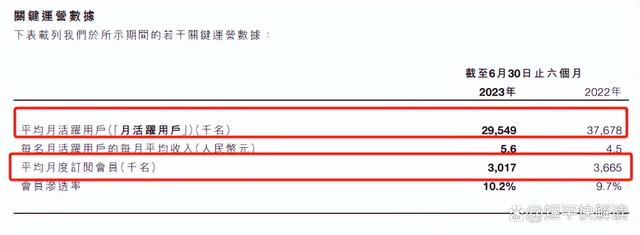 2019年至2022年,Keep的平均月活跃用户持续增长,分别为2180万、2970万、3440万及3640万,而2023年上半年则下降至2954.9万人,且平均月度订阅会员下降至301.7万。