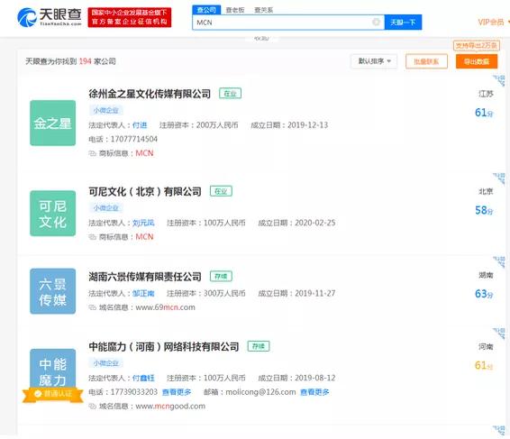 资本进入直播带货领域后,带来许多热钱,同时也会带来许多投机者。根据天眼查显示,最近一年开的MCN公司有194家,很难说其中没有投机取巧的。