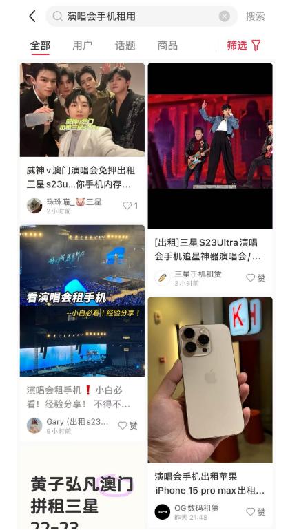 此前在中国市场,三星主要以另一种方式“出圈”。“极点商业”发现,在一些演唱会的手机租用上,部分商家以三星S23U作为主要出租产品。
