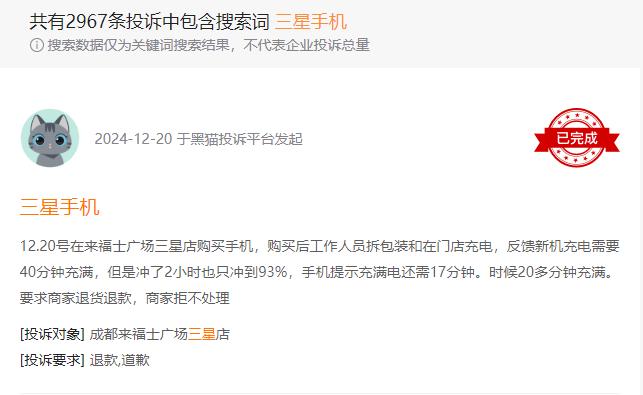 不仅如此,三星这几年推出的手机多次被指出存在问题,在黑猫上的投诉高达2967条,在12315上的投诉为235条,投诉内容包括续航、漏液、屏显等多方面内容。