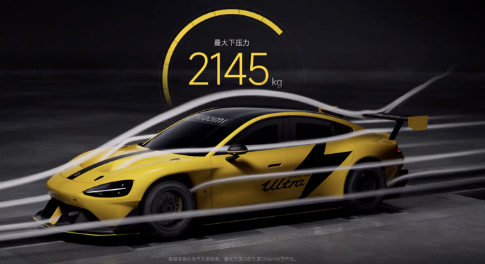 陈震也认为,小米针对这两个挖孔的描述是有问题的,这两个挖孔的确是复刻了原型车的造型,但在功能性方面,量产SU7 Ultra的两个挖孔只是能吸一点点热量出来,并不能为车头提供下压力,和原型车的前部启动结构完全是不同的。