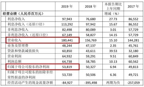 巅峰时期的2019年,民生银行实现营业收入1804.41亿元,归母净利润538.19亿元,盈利能力创下历史新高,稳稳跻身股份制银行第一梯队。