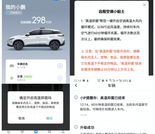 图 | 小鹏汽车APP上「高温抑菌」的功能界面 (Xmart OS 1.7.1)