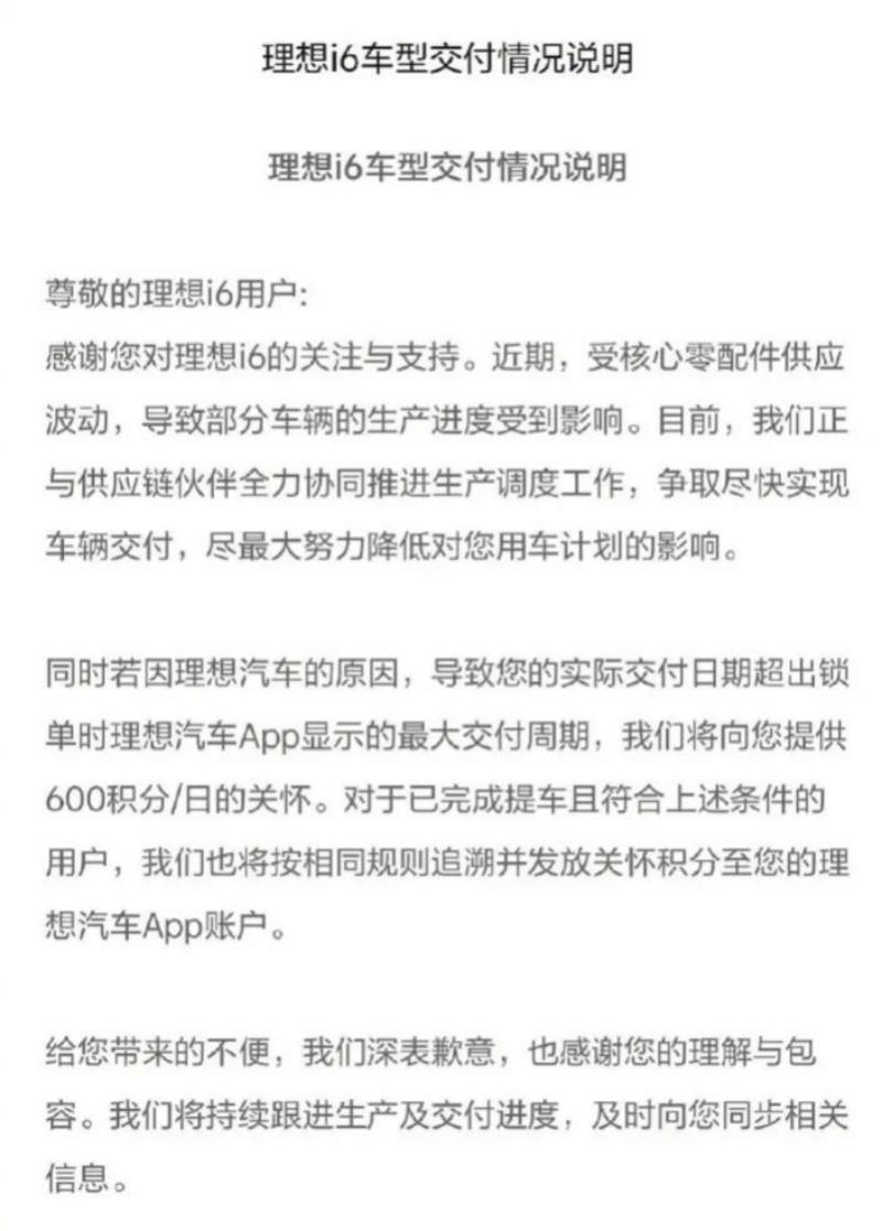 去年,理想i6因电池供应问题出现延迟交付,此事也流传出多个不同版本,有称宁德时代优先满足大客户产能,对理想“卡产能”,也有称理想借此逼用户选择欣旺达电池以实现降本。