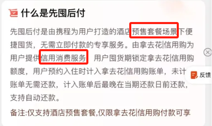也就是说,携程将酒店套餐的出售,与其消费信贷业务进行了深度捆绑。