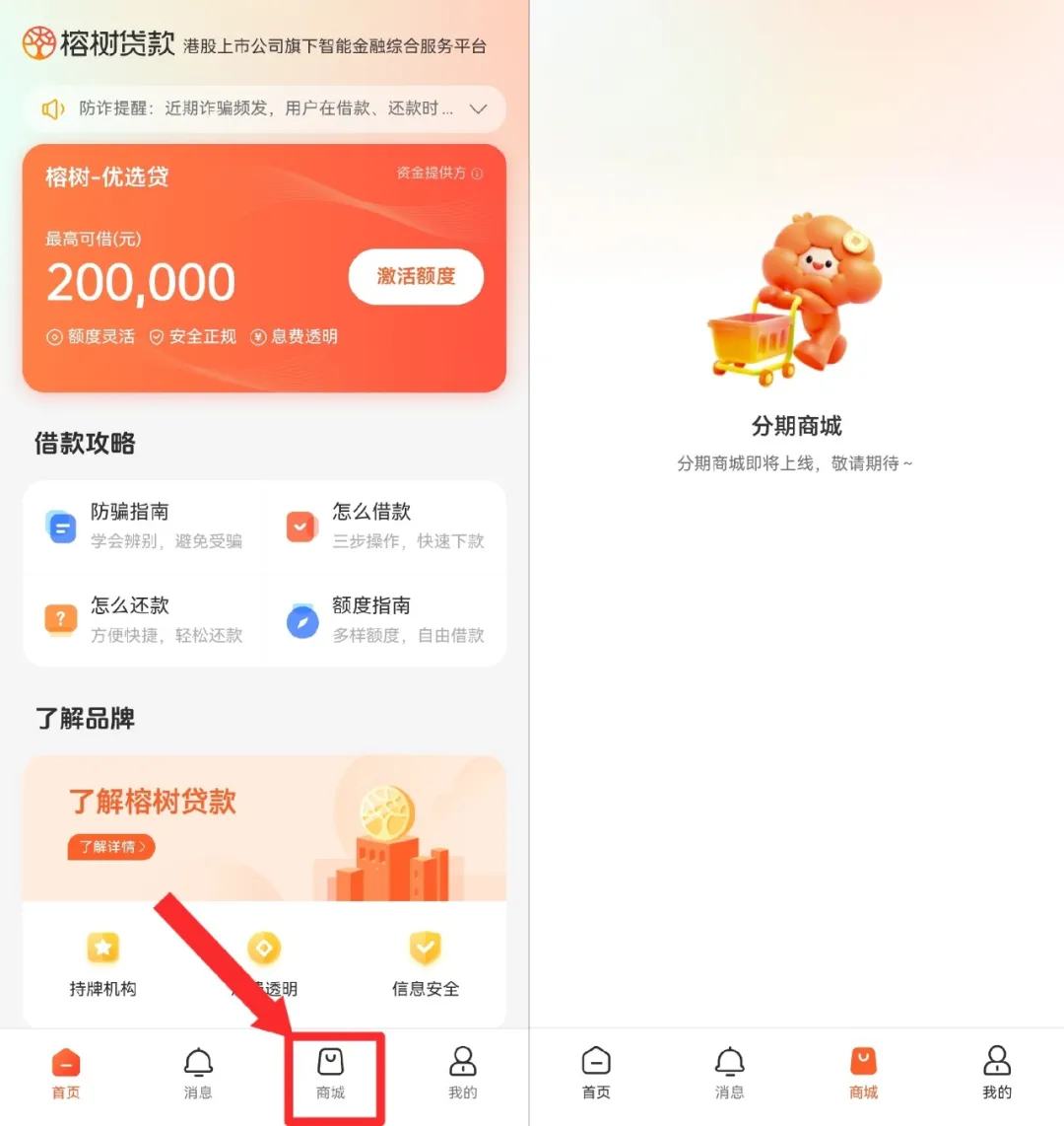 近日,禾金财经发现,百融云旗下“榕树贷款App”已增加“商城”板块,显示分期商城即将上线。