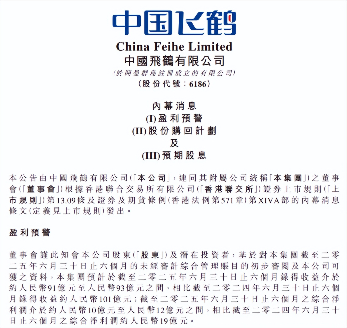 日前,港股上市公司中国飞鹤发布2025年中期业绩预告,预计今年上半年,公司的收入在91亿元至93亿元之间;预计净利润在10亿元至12亿元之间。