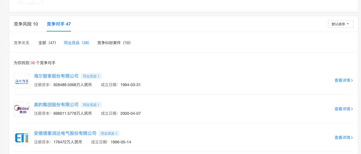 今天的家电市场越来越卷。 天眼查APP竞争对手分析信息显示,海信的竞争对手有47家,其中大部分都是经验20年以上的企业。