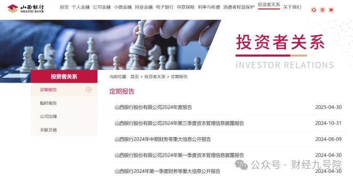 但山西银行2025年的信息披露完全“失声”:官网定期报告栏目中,2024年仍能查询到年报及各季度财务、资本管理信息,而2025年至今未披露任何一期季报、半年报,以及各季度的第三支柱信息,甚至未就未作披露作出任何说明。