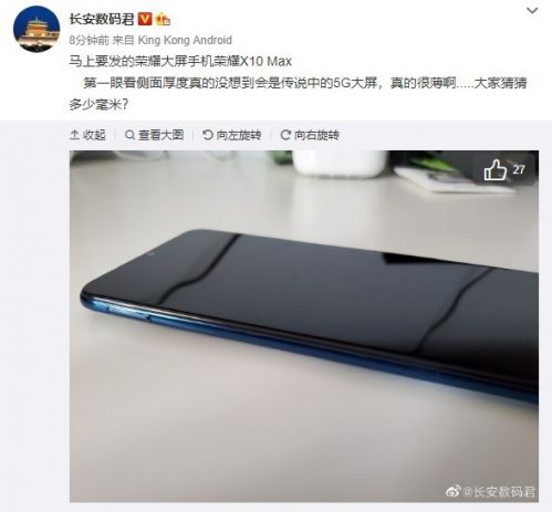疑似荣耀X10 Max真机图曝光:7英寸水滴全面屏并有超薄机身快报