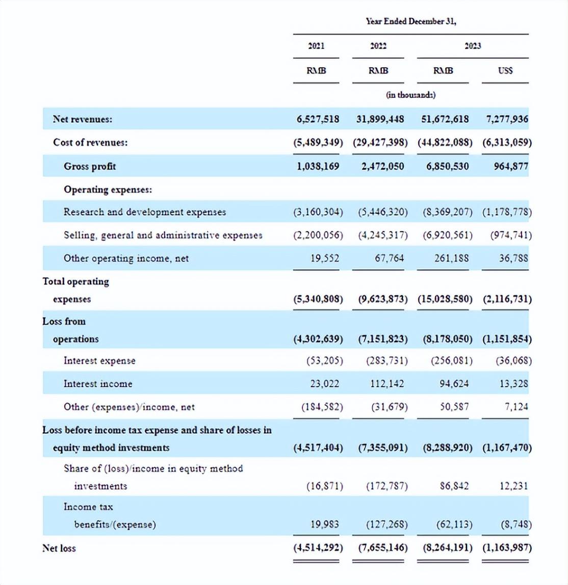 为了在内卷的国内新能源汽车市场上争得一席之地,极氪付出了不菲代价。和众多新能源车企一样,极氪也难以改变连年亏损的局面。2021年、2022年、2023年,极氪的净亏损规模分别为45.14亿元、76.55亿元、82.64亿元。