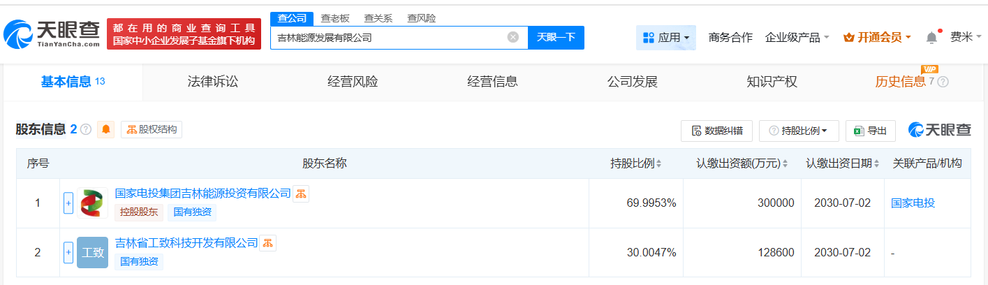 天眼查App显示,近日,吉林能源发展有限公司成立,法定代表人为杨玉峰,注册资本42.86亿人民币,经营范围包括以自有资金从事投资活动、供冷服务、余热发电关键技术研发、电气设备修理、再生资源销售、石灰和石膏销售等,由国家电投集团吉林能源投资有限公司、吉林省工致科技开发有限公司共同持股。