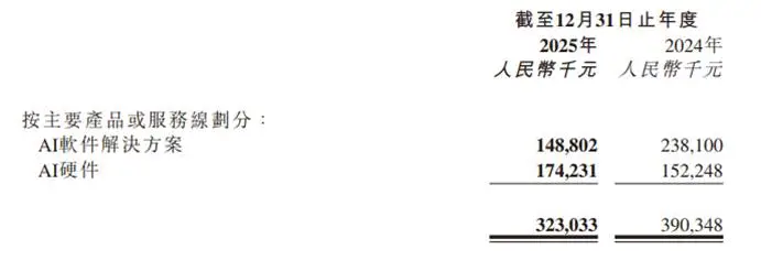 第一点是业绩基本面的疲软。从2025年财报数据来看,出门问问营收同比下降17.25%至3.23亿元,其中曾作为核心的AI软件业务收入更是同比锐减37.5%,最根本的原因是AIGC市场竞争太激烈了。