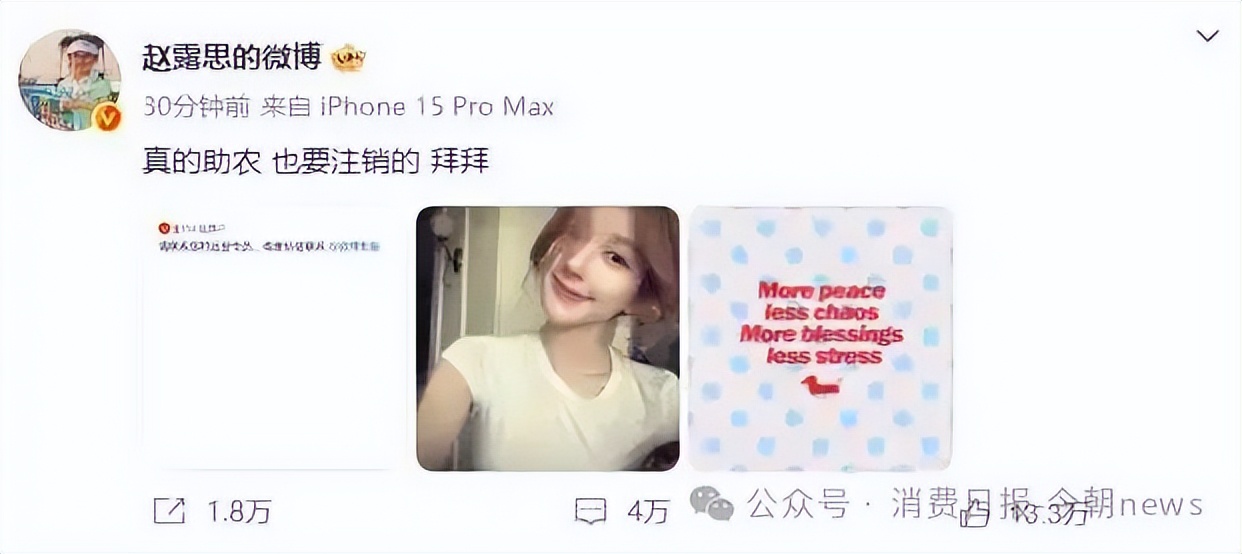 图源:赵露思发布微博,声称注销新浪微博