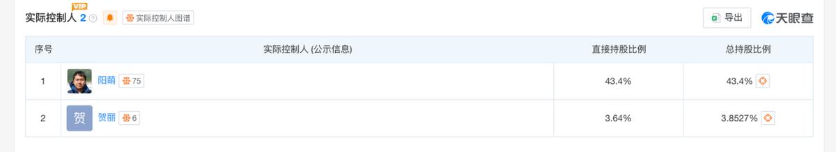 天眼查APP显示,安克创新的实控人阳萌持股比例为43%,阳萌与贺丽夫妇合计持股47.04%。