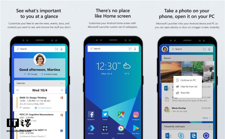 以Microsoft Launcher启动器为例,使用Microsoft Launcher,可对设备进行个性化设置,使其与壁纸、主题颜色和图标包等的风格一致。使用Microsoft帐户或工作/学校帐户,可访问个性化源中的日历、文档和最近的活动。甚至还可在Windows电脑上打开照片、文档和网页,跨所有设备实现高效工作。