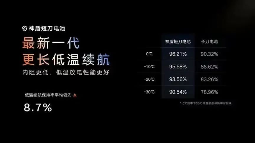 神盾短刀电池的尺寸仅为580mm,相较于传统的长刀电池,尺寸缩短了大约40%,这种紧凑的尺寸设计可以为车辆提供了更多的空间布局灵活性;