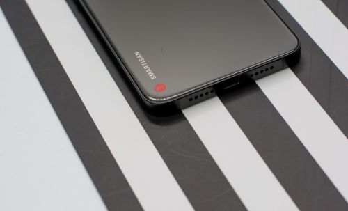 手机底部充电接口位于中央,麦克风和扬声器成小圆点以充电接口为轴对称排布,整体紧促,底部外侧两个天线深灰哑光点缀,和谐静谧。
