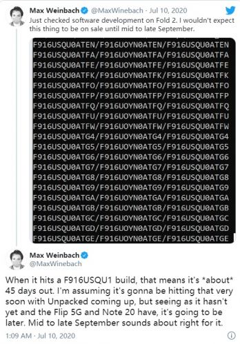 据外媒XDA-Developer的Max Weinbach最新透露的消息显示,全新的三星Galaxy Z Fold 2(也就是此前爆料中的Fold 2)并不会在8月5日发布,这主要是因为系统软件尚未准备就绪。同时Max Weinbach还提到,该软件甚至还没有准备好在9月发布。如果该消息属实的话,这也就意味着,该机的最终亮相还有较长的路要走,对该机感兴趣的朋友需要再耐心等待一下。