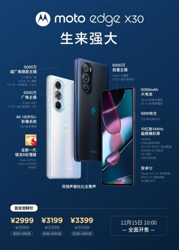 2999元起!摩托罗拉edge X30今日首销:首发骁龙8旗舰芯快讯
