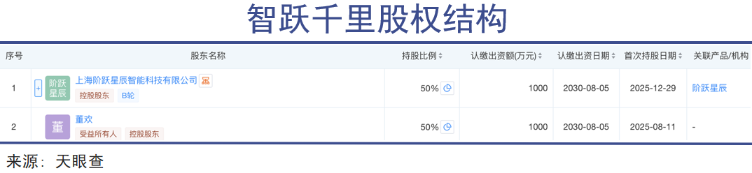 去年8月,一家名叫智跃千里的公司正式成立,这个名字很容易让人联想到是阶跃和千里的联合体。年底,原大股东郝建国退出,阶跃星辰目前成为持股50%的股东。