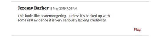 名为Barker的网友评论说,“这看起来就像是在危言耸听——除非有一些真实证据支持,否则这一说法非常缺乏可信度。” ↓