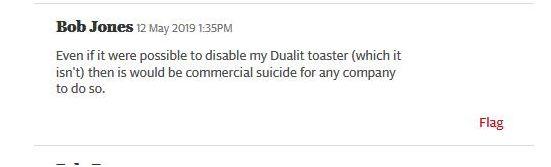 不过,对这一把戏,英国网友并未买账。有人质疑说,华为为何要关掉我的面包机呢?
