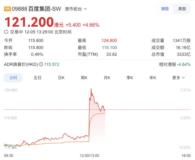 受此消息影响,百度港股股价午盘后拉升,一度涨超8.7%。
