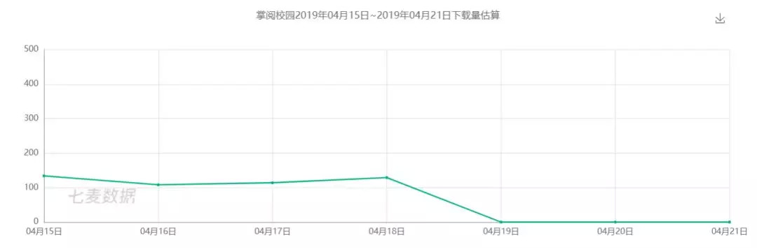 从七麦给的数据来看,4月15日到4月21日,掌阅校园IOS端预估下载总量仅有485。