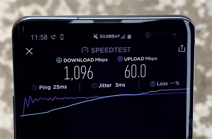 经测试,美国Verizon的5G网络的下载速度现在看来是对目前的4G是一个巨大飞跃。超过700Mbps是非常容易的,如果你站在运营商的5G节点附近,就会经常越过千兆这个标志。5G节点利用毫米波技术来实现更快的下载速度。