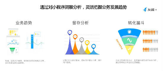 友盟+CPO吕志国提到:“数据是第一生产力,友盟+将为支付宝小程序提供稳定、全面、智能的数据服务,驱动开发者业务增长。”友盟+将利用行业领先的大数据服务能力,为小程序提供新增、活跃用户规模、使用时长等基本业务趋势洞察以外,还将提供更多的有针对性的支付宝小程序分析功能,如提供小程序在支付宝平台内外社会化裂变分析洞察能力;对用户行为追踪,洞察用户留存习惯,从而提升用户质量;自定义关键业务节点,利用漏斗模型进行转化分析,通过精细化分析进行运营赋能。