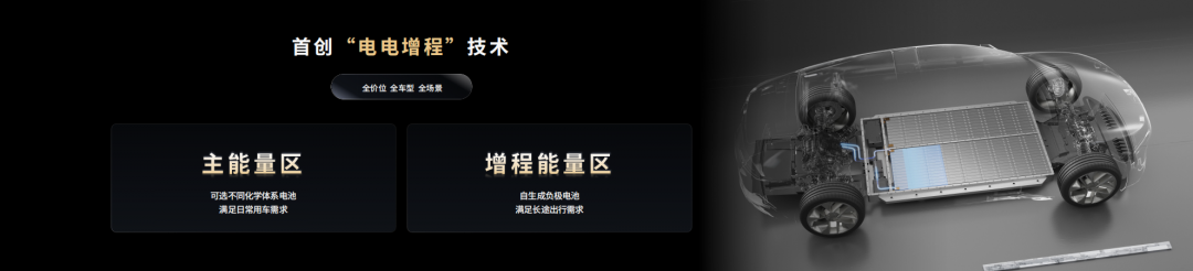 骁遥双核电池首创的“电电增程”技术,能够结合车辆的行驶状态和用户驾驶习惯,智能调控两个能量区的分配策略。主能量区可以根据用户的驾驶习惯与场景,适配不同化学体系的电芯,满足日常用车需求;增程能量区可采用高比能自生成负极技术,提供更大的电量,以满足用户的长途出行需求。
