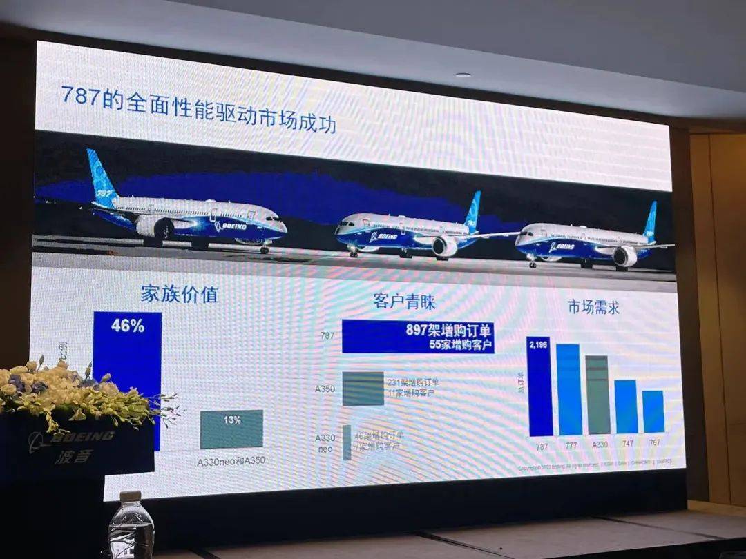 在宽体机方面,中国市场对于宽体机有巨大的需求,目前已经有100多架787在服务中国市场。