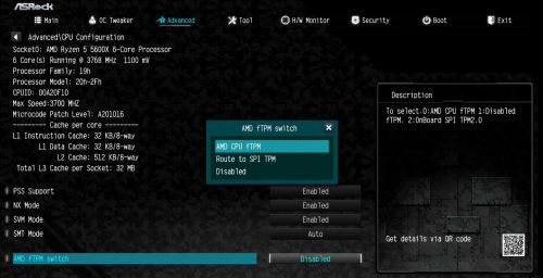 (a) 进入 "Advanced” \ "CPU Configuration” 找到 [AMD fTPM switch].