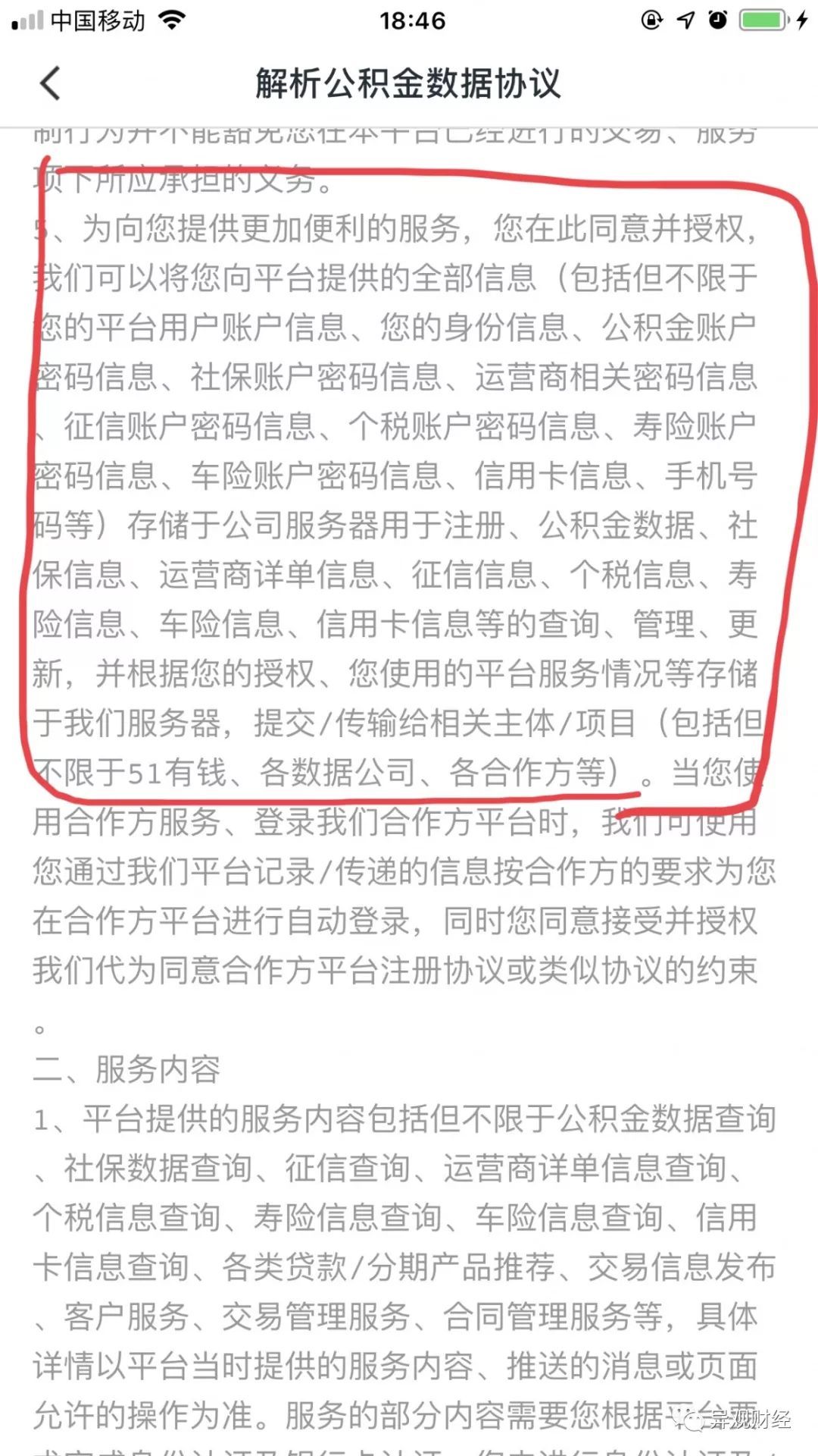 异观财经下载51公积金APP后发现,《解析公积金数据协议》的相关条款,让人望而却步。