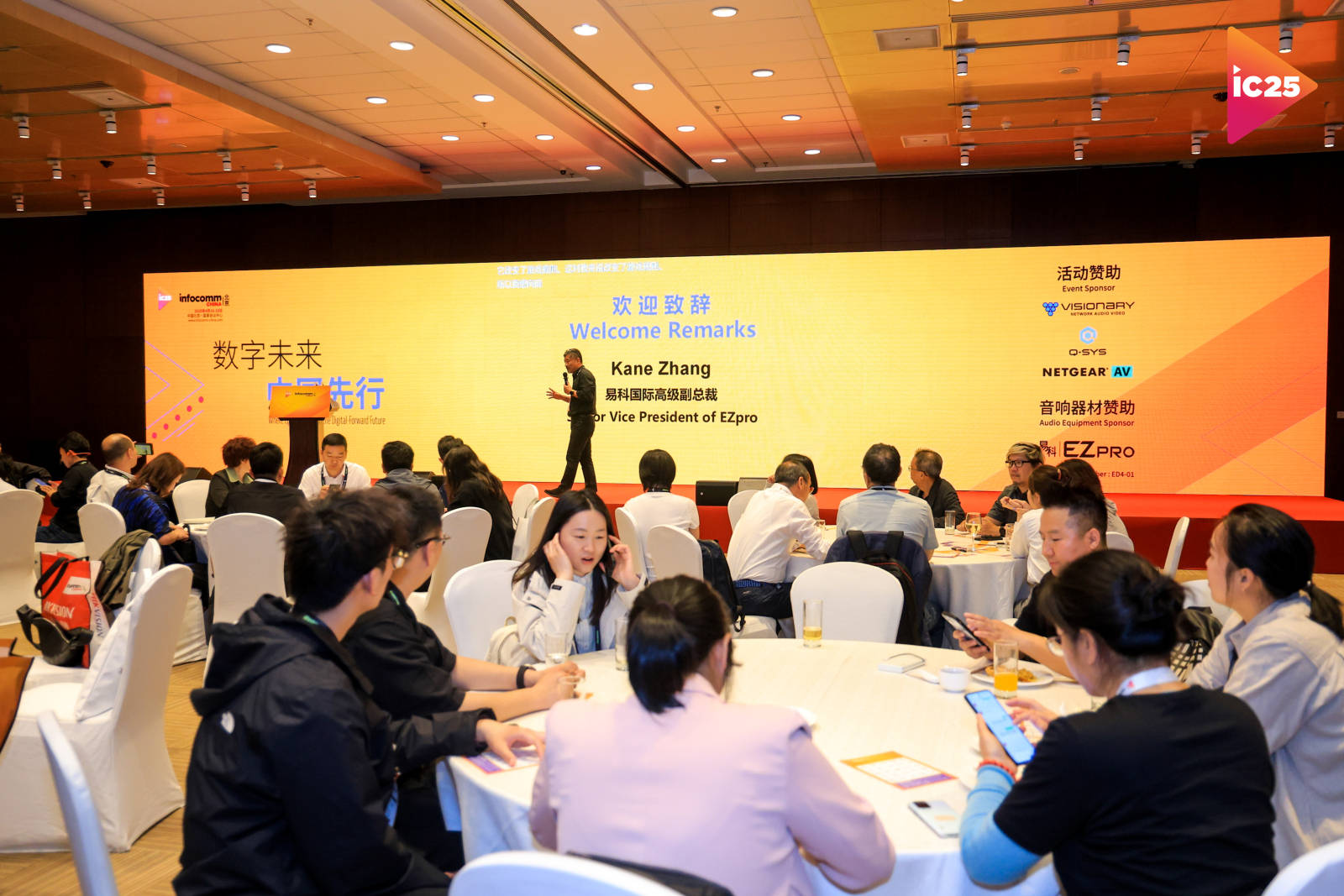 业界精英欢迎酒会吸引了184人参会。由InfoCommAsia 品牌大使、易科国际高级副总裁 Kane Zhang 以激情满满的演讲拉开序幕,各企业高管和视听先锋面对面交流,让每一次交谈都指向真实的合作机遇,建立深度联系以实现有效的商业交易。