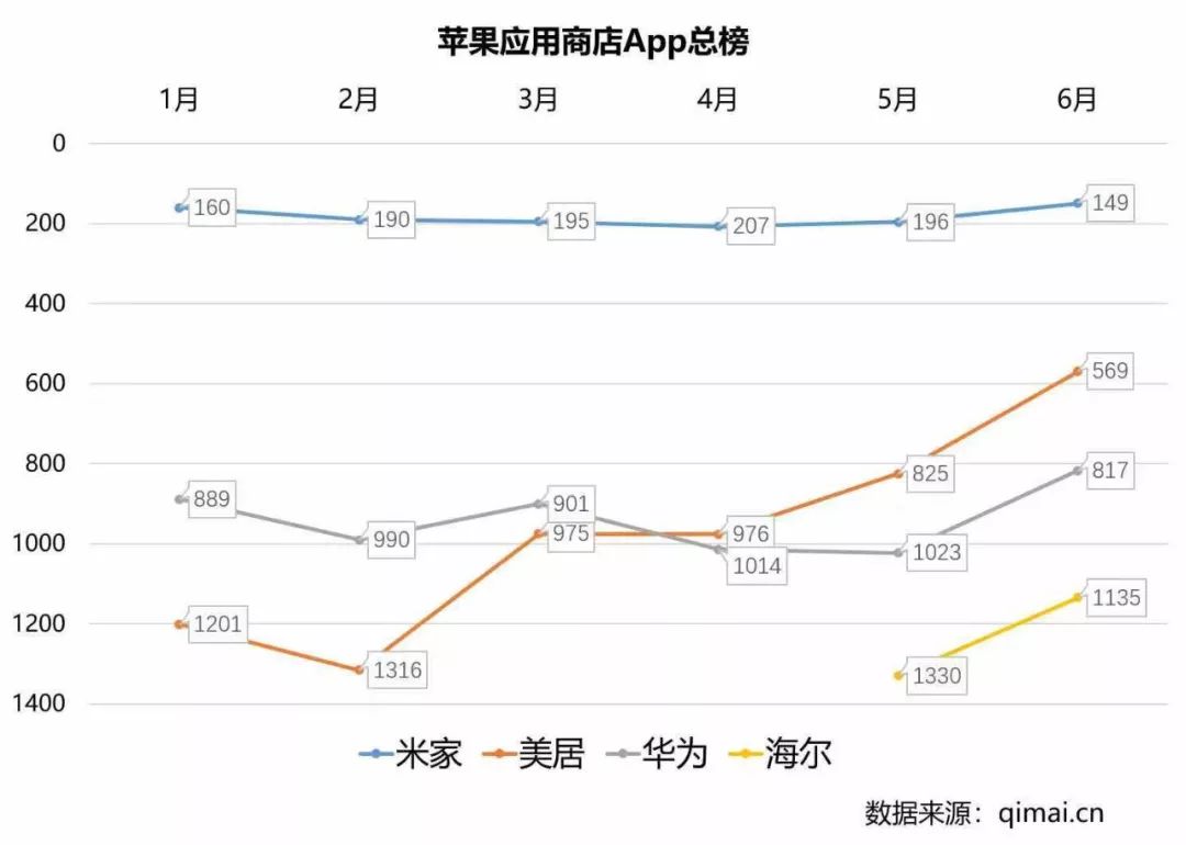 美居App装机量和活跃度已经在家电和智能家居行业排第一,2019年上半年全国应用商店智能家居App下载量 2019年上半年苹果AppStore排行榜 同时,巨头们在国内智能家居市场。