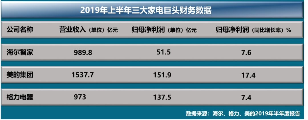 上周末,海尔、美的和格力三大家电巨头发布了2019年中期报告,在中报里,家电行业呈现出强者愈强的趋势,三家企业今年都在财富世界五百强行列,排名比去年均有所提升,美的集团排名位居全球家电企业之首。