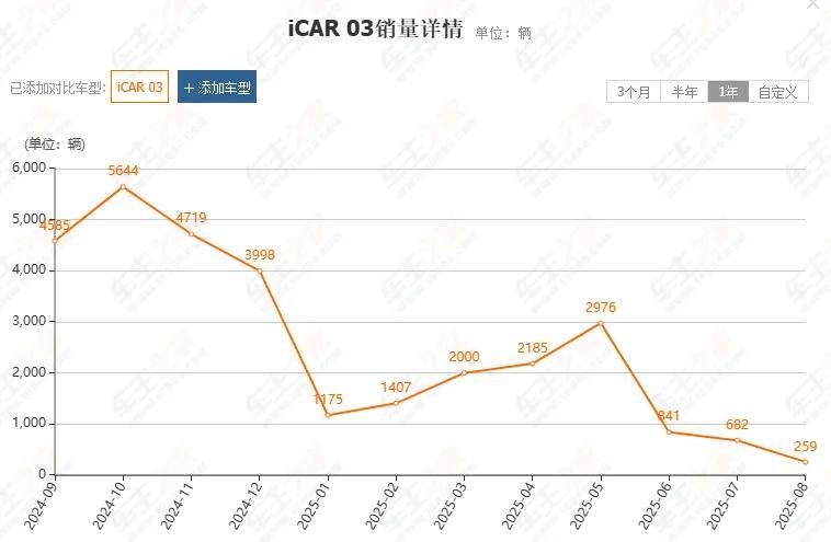 首款车型iCAR 03在2024年9月创下月销5644辆的纪录,这一短暂的高光时刻如同昙花一现,随后销量便一路急转直下。截至2025年8月,销量已跌至259辆,仅仅只有巅峰时期(5644辆)的4.5%,如此巨大的落差,让人不禁对iCAR的市场表现唏嘘不已。而iCAR V23虽然创下了8小时订单破3万的惊人纪录,但随后而来的大规模退订潮,却让其几乎“一夜蒸发”,仿佛是一场精心策划的闹剧,最终以惨淡收场。