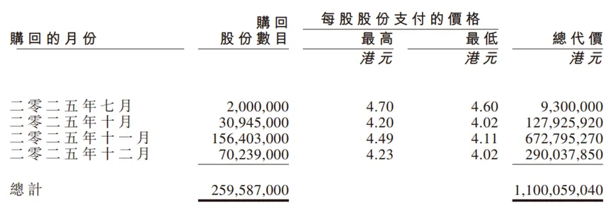 同时,飞鹤2025年全年实行多次股份回购,共回购约2.596亿股股份,累计回购金额约11亿港元。截至2025年末,公司持有259,587,000股库存股份。