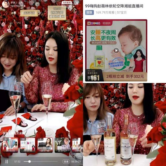 2、代言型明星主播,这类明星有自己的产品,直播频次低,上直播为自己产品代言和销售。比如和雪莉一起直播的范冰冰,其在直播间卖的就是“范爷”自己的品牌面膜;再比如上次出现在李湘直播间的赵薇,她卖的是自家的红酒。