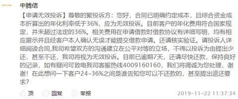 对此,中腾信回复称,“目前客户的年化费用符合国家规定,并未超过法定的36%。相关费用在申请借款时借款协议有详细写明,均有相应展示并且经客户本人确认无误才能提交借款申请。”